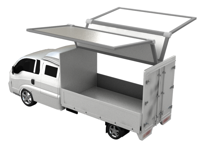 있고 여러 크기로 제작 가능하다. 현대 포터 트럭과 기아 봉고 트럭으로 제작이 가능하며 크기는 3,650*1,660*1,880mm이고 축간거리는 3,150mm이다.