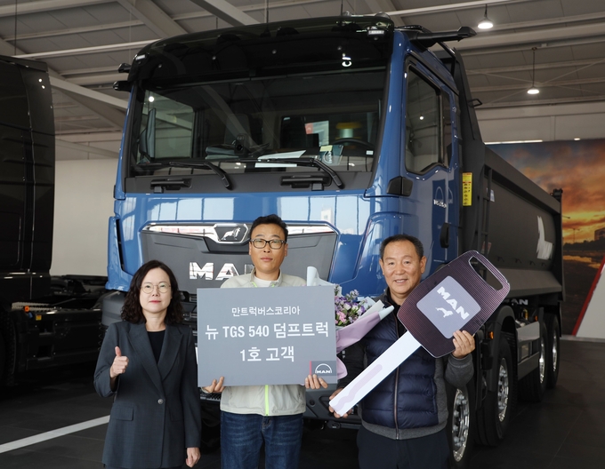 만트럭은 뉴 MAN TGS 540마력 덤프트럭 공식 출시와 함께 지난 22일 경기도 평택에 위치한 만트럭버스코리아 PDI센터에서 뉴 MAN TGS 540마력 덤프트럭 1호차 인도식을 진행했다.