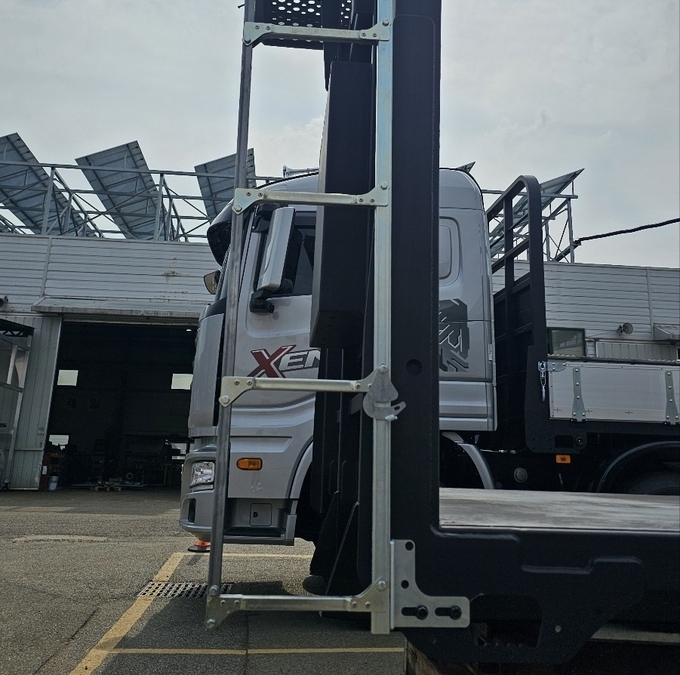 발판은 작업 안정성을 고려해 넓은 폭으로 제작되어 상·하차