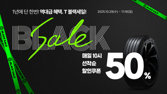 행사 기간 매일 오전 10시, 선착순 5명에게 타이어 50% 할인 쿠폰을 증정한다. 쿠폰은 한 계정당 1회 당첨만 가능하며, 11월 30일까지 사용할 수 있다.