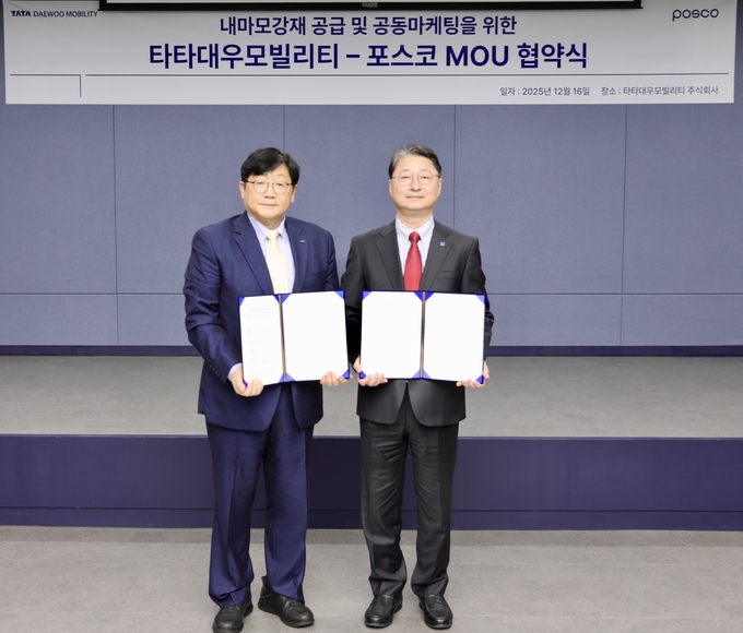 김태성 타타대우모빌리티 사장은 “이번 협약은 단순한 소재 공급을 넘어, 포스코 내마모강이 적용된 상용차를 중심으로 공동 마케팅을 전개하고 신차 개발 초기 단계부터 긴밀한 협업 체계를