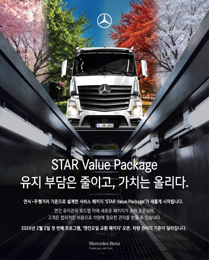 메르세데스-벤츠 트럭 공식 수입사 스타트럭코리아(대표이사 동근태)는 오는 2월 2일부터 ‘엔진 오일 교환 패키지’를