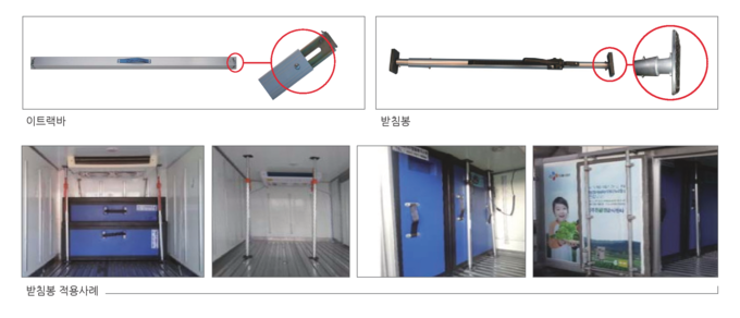 실현했다. 특히 하단부에 고탄성 스프링을 내장하여 고정 시 발생하는 충격이 탑차 내부 벽면에 직접적으로