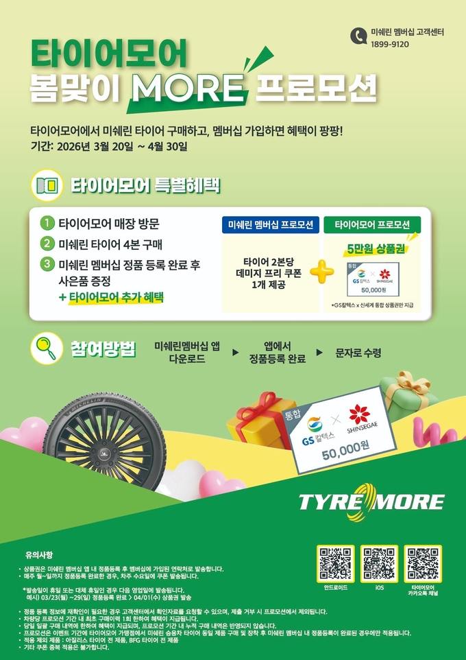 있다. 여기에 타이어모어만의 추가 혜택으로 5만원 상당의 ‘GS칼텍스 X 신세계 통합 상품권’을